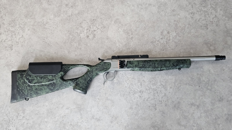 Zum Verkauf steht eine Bergara BA13 TD Kipplaufbüchse Stainless im Kaliber 308. Es handelt sich um eine gebrauchte Waffe in sehr gutem Zustand. der Abzug wurde überarbeitet und steht jetzt bei trockenen 350 Gramm Abzugsgewicht. Der Lauf hat einen Länge von 16,5"/42cm und ab Werk ein 5/8x24 Mündungsgewinde, die Züge und Felder sind blank und scharf. Der Schalldämpferadapter ist nicht Bestandteil der Auktion. Der Originallochschaft wurde durch eine Version in Camo Green Black ersetzt und mit einer Victor Company Schafterhöhung versehen. An der Basküle befindet sich ein Halter für 2 Patronen. Zur Zielfernrohrmontage ist eine Dentler Grundschiene verschraubt und flächig verklebt. Präzision ist sehr gut, anbei ein Vier-Schuss-Schussbild auf 100m (inklusive einem Wackler von mir). Verkauf wegen Überbestand.