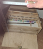Ich biete den abgebildeten Koffer an. Ich habe ihn eigentlich gekauft, da ich meine Ausrüstung von Perkussionsrevolver und Perkussionspistole trennen wollte. Hier habe ich aber das Problem, dass der separate Trommelllader meines Perkussionsrevolvers nicht rein passt. Meine .44er Unterhammerpistole ist auch zu lang. Der Koffer ist Eigenbau und hat wie zu sehen viele Fächer und einen Trageriemen. Verkauft wird hier nur der Koffer, das abgebildete Zubehör und der Revolver gehören NICHT zu Auktion. Nur die zu sehenden Pulverröhrchen verkaufe ich mit. Der Koffer ist abschließbar. Dies ist ein Privatverkauf der ohne Gewährleistung und ohne Rücknahme erfolgt.