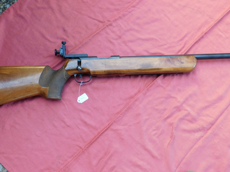 Walther, Einzellader KK Matchbüchse mit Diopter und Ringkorn, Kal. 22 Lr. Ringkorn ist verstellbar! Lauf innen spiegelblank und Profil scharf, gültiger Beschuss vorhanden, die Waffe hat für mich leichte Gebrauchsspuren.