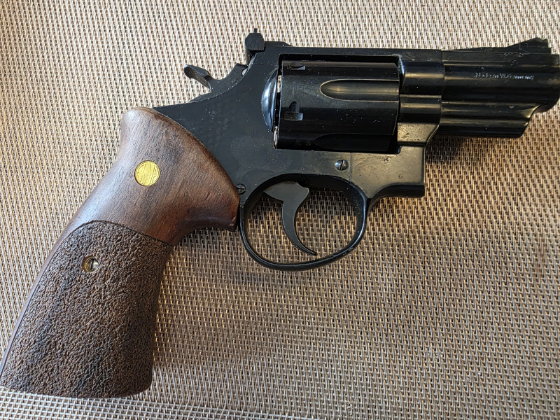 Sie bieten auf einen Erma Revolver EGR 77 mit verschiedenen Griffschalen. Wer mit Sofortkauf beendet erhält die zwei abgebildeten Griffschalen dazu. Ersteigert jemand die Auktion kann er sich eine der zwei Griffschalen Paare auswählen. Der Revolver ist in einem sammelwürdigen Zustand. Das Korn hat eine klitzekleine Macke Vorlage eines Personalausweises zwingend erforderlich.