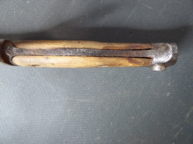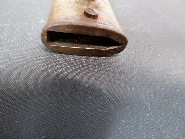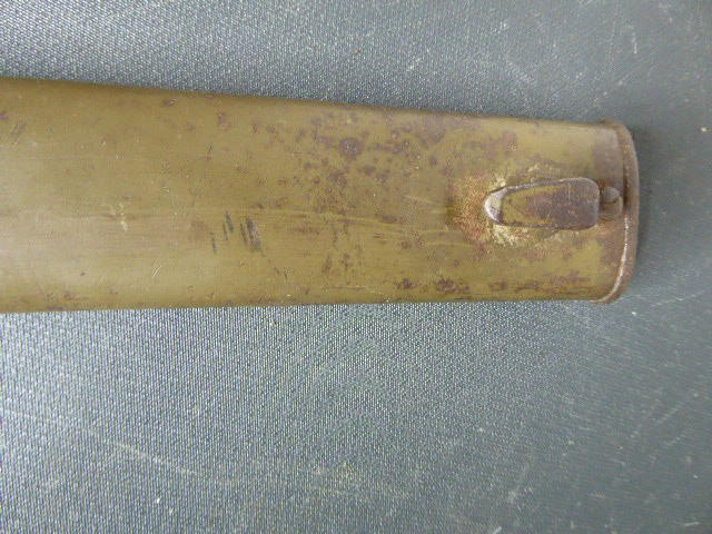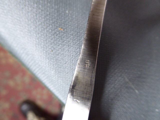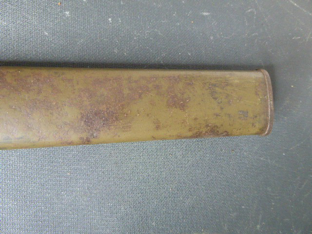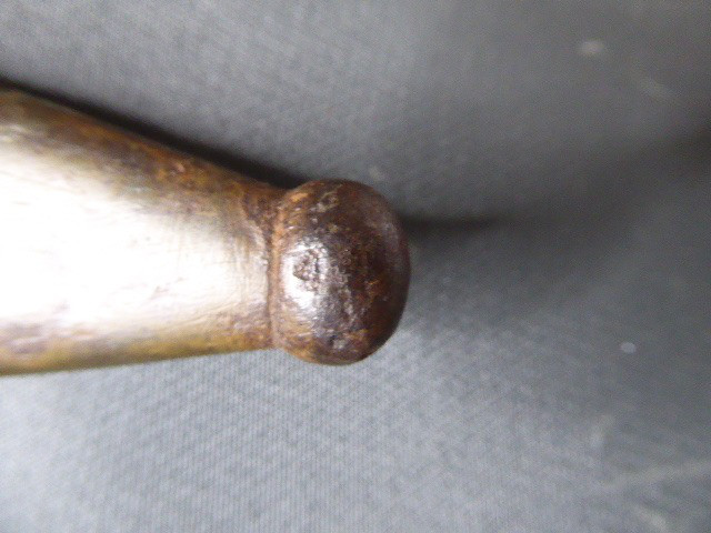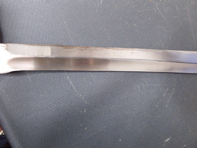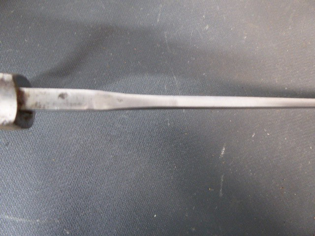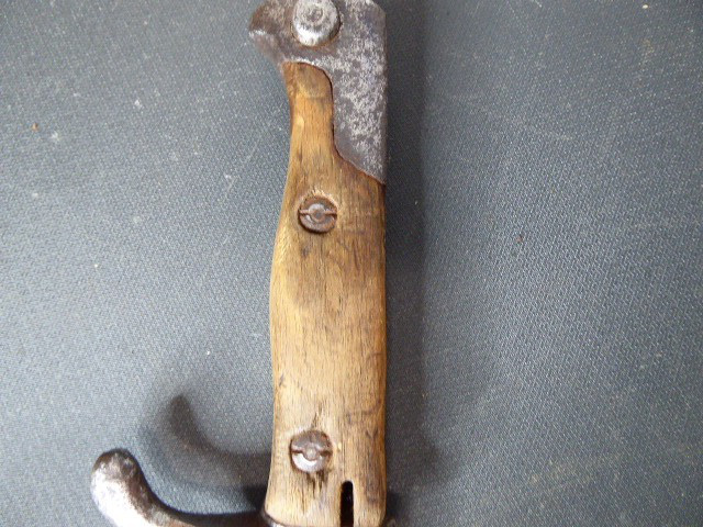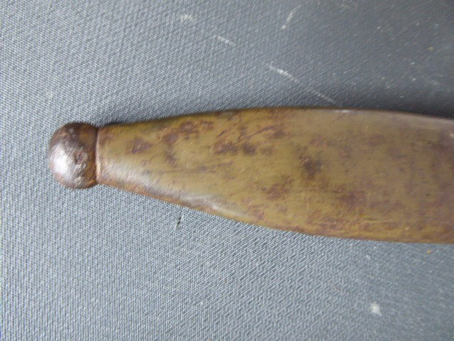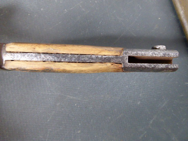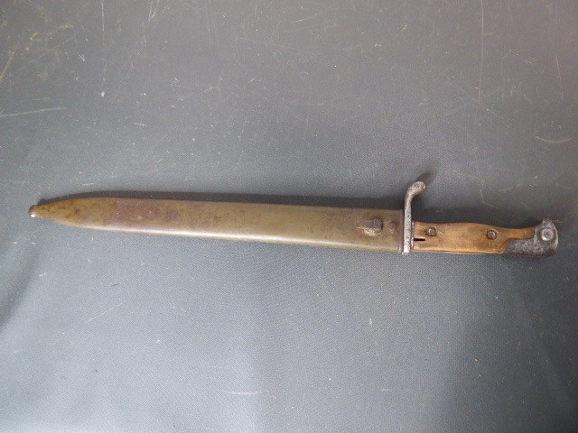 Aus meiner Sammlung gebe ich, ein altes 98/05 Bajo mit ausgeschliffener Säge der Ausschliff mit Punze Scheide Hersteller Kolonien? ab. Griff zwei Holz Schalen, Parierung Regiment Bezeichnung, 8.127 46 Drücker mit Punze und Funktion. Klinge mit ausgeschliffener Säge in dem Ausschliff Gepunzt, Rücken noch mit Krone und Punze, auf der Fehlschärfe Hersteller GEBR. HARTKOPF SOLINGEN darunter 8 gepunzt, auf der anderen Seite, C.C.ETRICH ALTENBURG. Scheide mit grünlichen Original Lack und unten an der Kugel mit Punze. Wahrscheinlich Kolonien, aber Kenner werden es sicherlich wissen wo das Teil getragen wurde. Das Teil ist im Guten Sammelwürdigen Zustand. Alles andere entnehmen Sie Bitte den Fotos. Gesamtlänge: 51,7, cm, ohne Scheide: 50,1 cm, Klingenlänge: 37 cm, Klingenbreite: 2,6 - 3,1 cm. Kann zu jederzeit bei mir besichtigt werden. Privatauktion keine Rücknahme und Garantie.