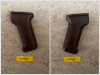 Der Griff war im NVA-Einsatz, mit deutlichen Gebrauchsspuren, aber ohne Risse und stammt aus DDR Produktion, siehe Foto. Durch eine Reinigung lässt der Zustand noch deutlich verbessern.