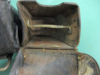 Angeboten wird eine gut erhaltene Patronentasche für das G 98 ,1.Wk. .Die Rückseite noch braun ,die Vorderseite geschwärzt .Frühe Fertigung , Messingbeschläge . Nähte fest , innen mit Stegen .Eine Lasche an der Spitze beschädigt , s.Bild