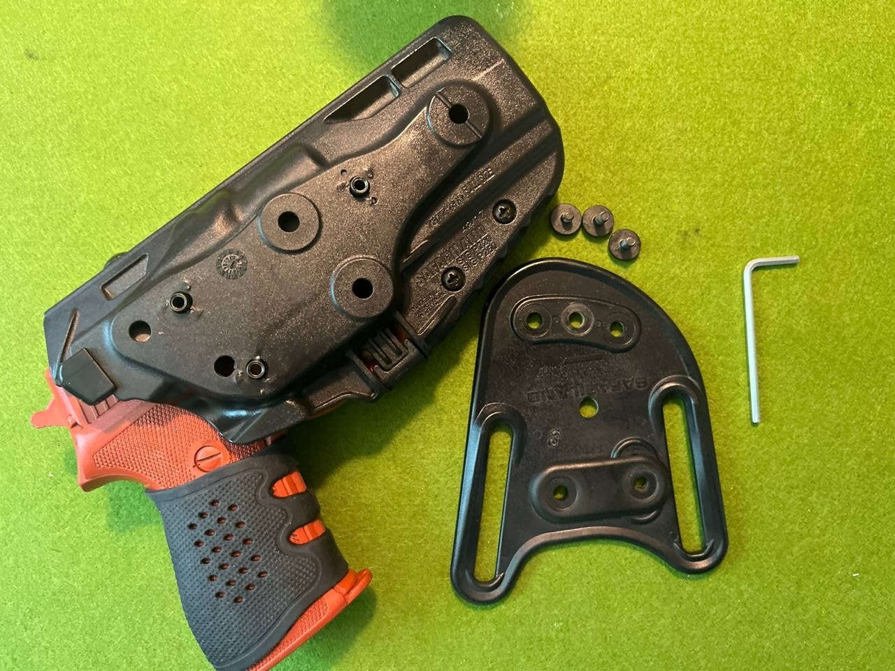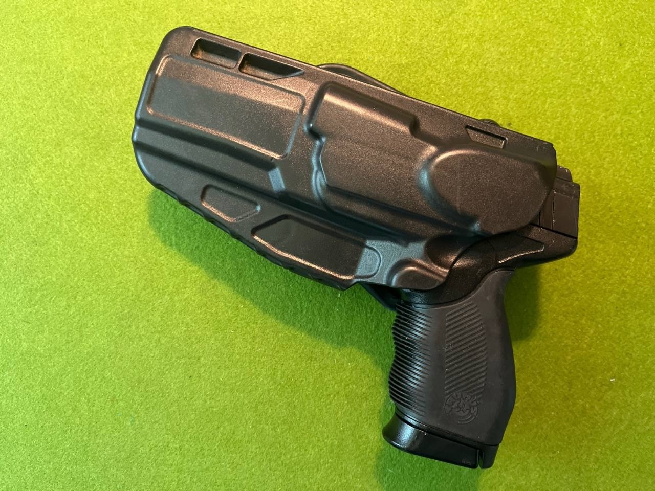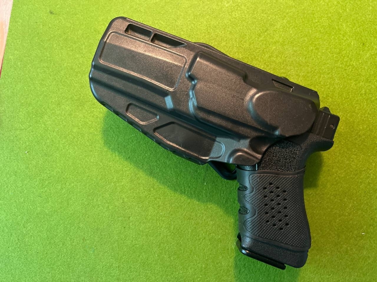 Das Holster kann bei guter Passform auch als reiner Schnellzieher getragen werden, hier unten ein paar Beispiele von Waffen, die auch sicher genuf gehalten werden. Es handelt sich außerdem um kein "Roto", der Tragewinkel ist nur eingeschränkt verstellbar.