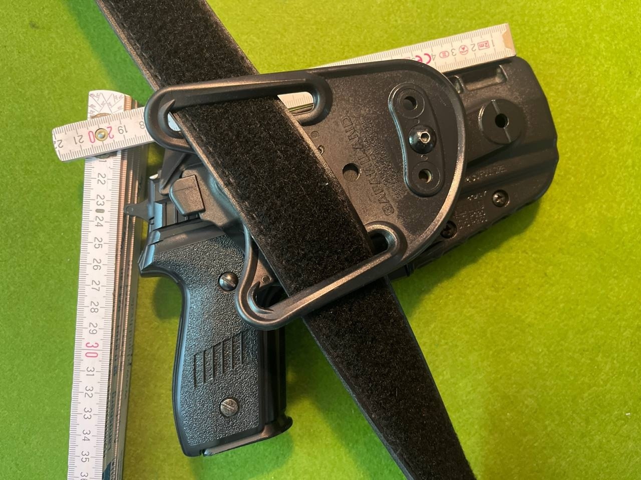 (die max. Breite für den Gürtel beträgt 60mm.), mit der bekannten Verriegelungssystem am Abzugsbügel