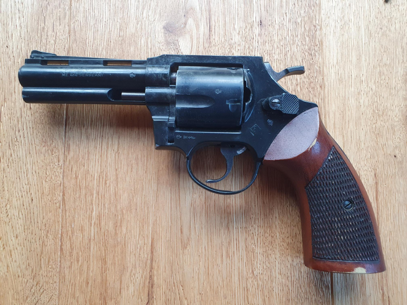 Angeboten wird ein großer Revolver von ME 454 Sergeant im seltenen Kaliber .45 short von 1989.