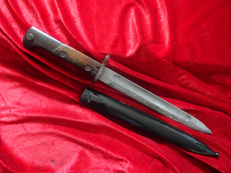 Sie bieten hier auf ein altes originales Bajonett, Polen Radom, kplt. mit Stahlscheide, (diese wurde farblich restauriert, lässt sich evtl. wieder entfernen?), Klinge geschliffen, für das Alter noch gut erhalten, Drücker fest, sehr schönes, bis auf die beschriebenen Mängel gut erhaltenes Sammlerstück, garantiert alt und original, darauf gewähre ich uneingeschränktes Rückgaberecht, ebenso bei falscher Beschreibung, ansonsten da Privatverkauf keine Gewährsübernahme!