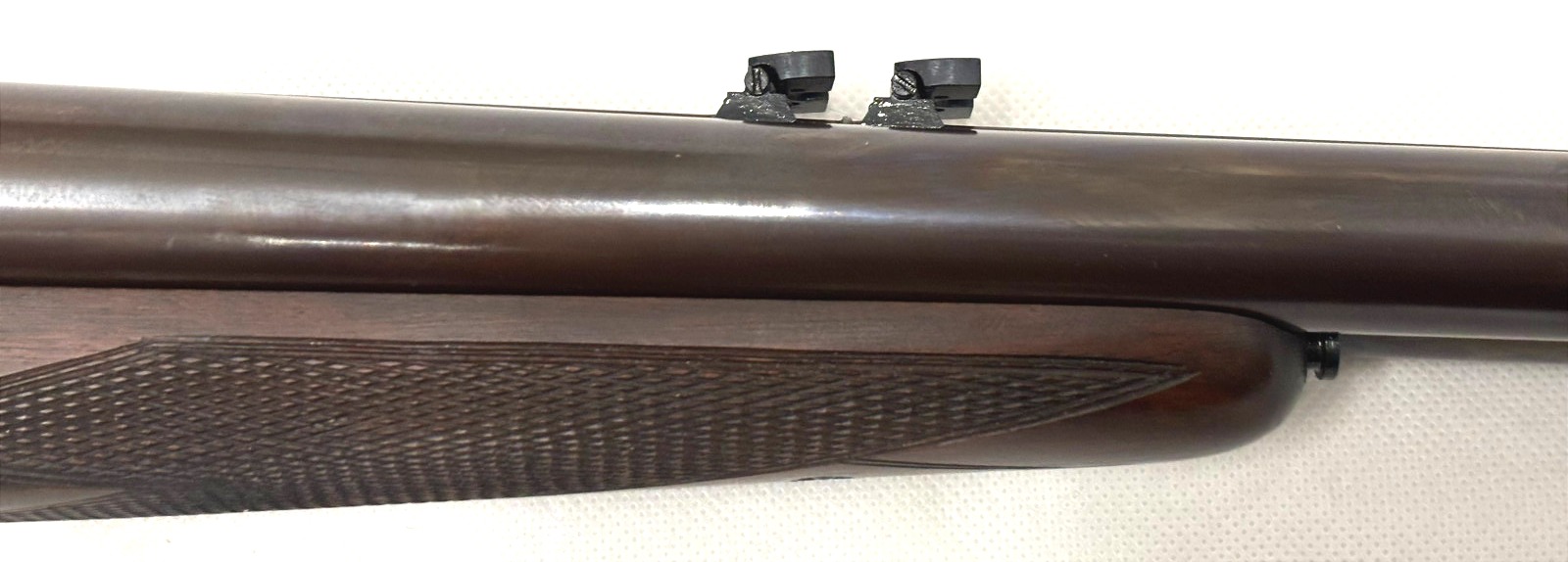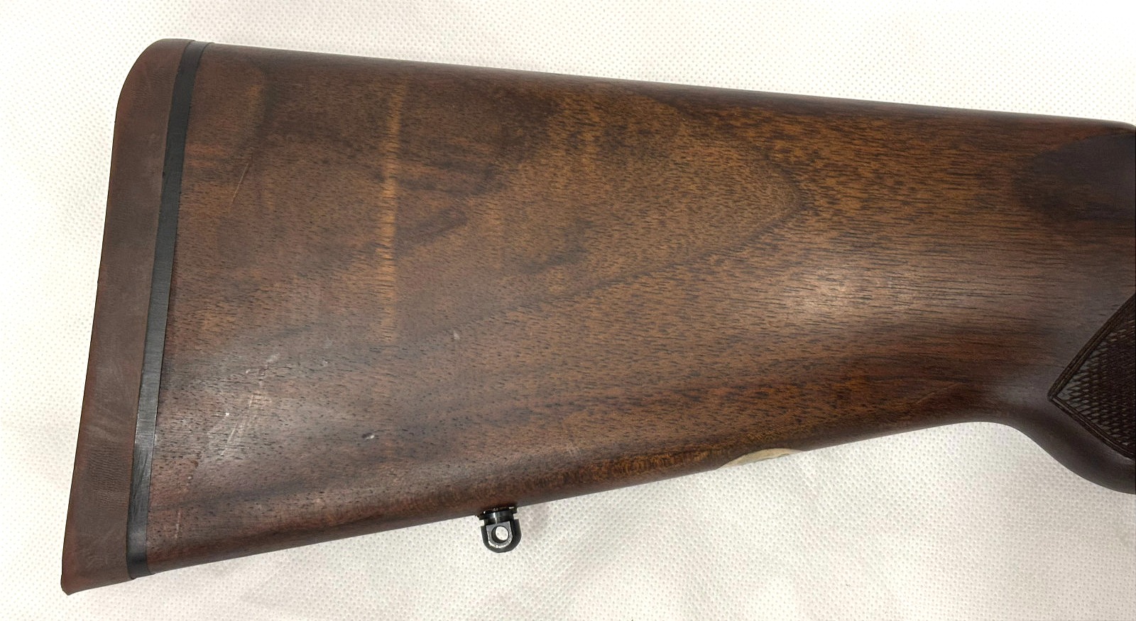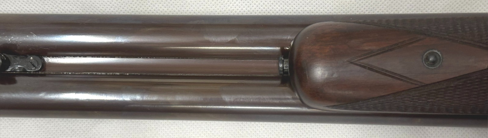 Die Waffe funktioniert einwandfrei und wurde wenig geschossen. Die Züge und Felder sind scharf. Der Schaft und die Bräunung weisen leichte Druckstellen / Kratzer auf. Im Bereich der Laufmündung sind jedoch beidseitig stärkere Kratzer an der Bräunung vorhanden. Ansonsten finden sich an der Bräunung lediglich noch ein bis zwei leichte Kratzer. Meiner persönlichen unverbindlichen Einschätzung nach ist das Laufbündel original gerbäunt und nicht brünniert. An der Hinterschaftunterseite wurde eine kleine Plakette in das Holz des Schaftes eingelassen. Diese ist nicht original wurde aber professionel gesetzt.