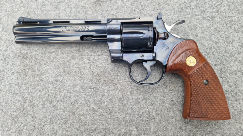 Colt Python im Kaliber .357 Magnum. Bestzustand. Brüniert in Royal Blue Finish, 6 Zoll Lauflänge , Ventillierte Laufschiene, Original Holzgriffschalen mit Colt Medallion. Deutscher Beschuss 1979.............Für Jäger, Sportschützen, Sammler,....... .................Verkauf von Privat unter Ausschluss jeglicher Sachmängelhaftung und Gewährleistung. Keine Rücknahme des Artikels. Zahlung und Abnahme nach Auktionsende. Kein Versand ins Ausland. ......... Foreign bidders: I don't offer export. If you buy, you have to organize export through a german gun dealer of your choice.