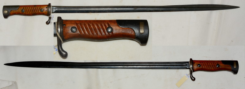 Deutsches Bajonett 98 lang, sehr guter Zustand aber sicher so überarbeitet, brüniert und ich denke, die Griffschalen sind neu, "Simson Suhl", kein Abnahmestempel, keine Scheide aber ansonsten top-Zustand