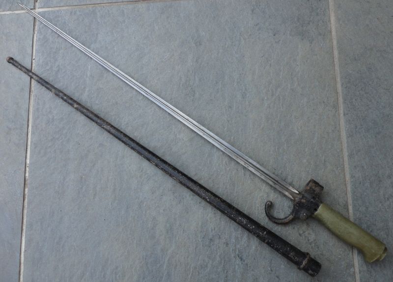 Französisches Lebel Bajonett M1886 1.Mod. (ohne die beiden Griffbesfestigungsschrauben) im Fundzustand.