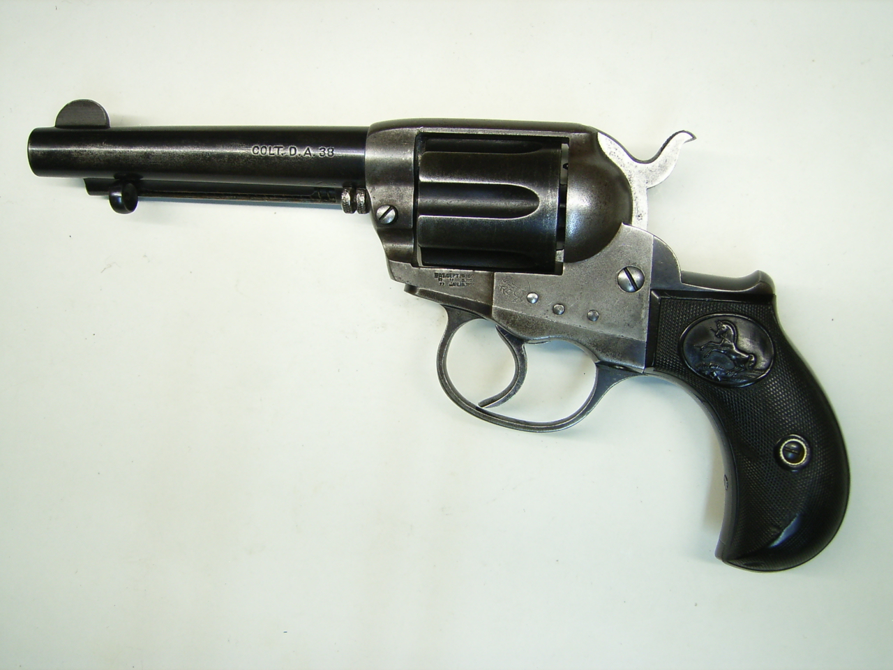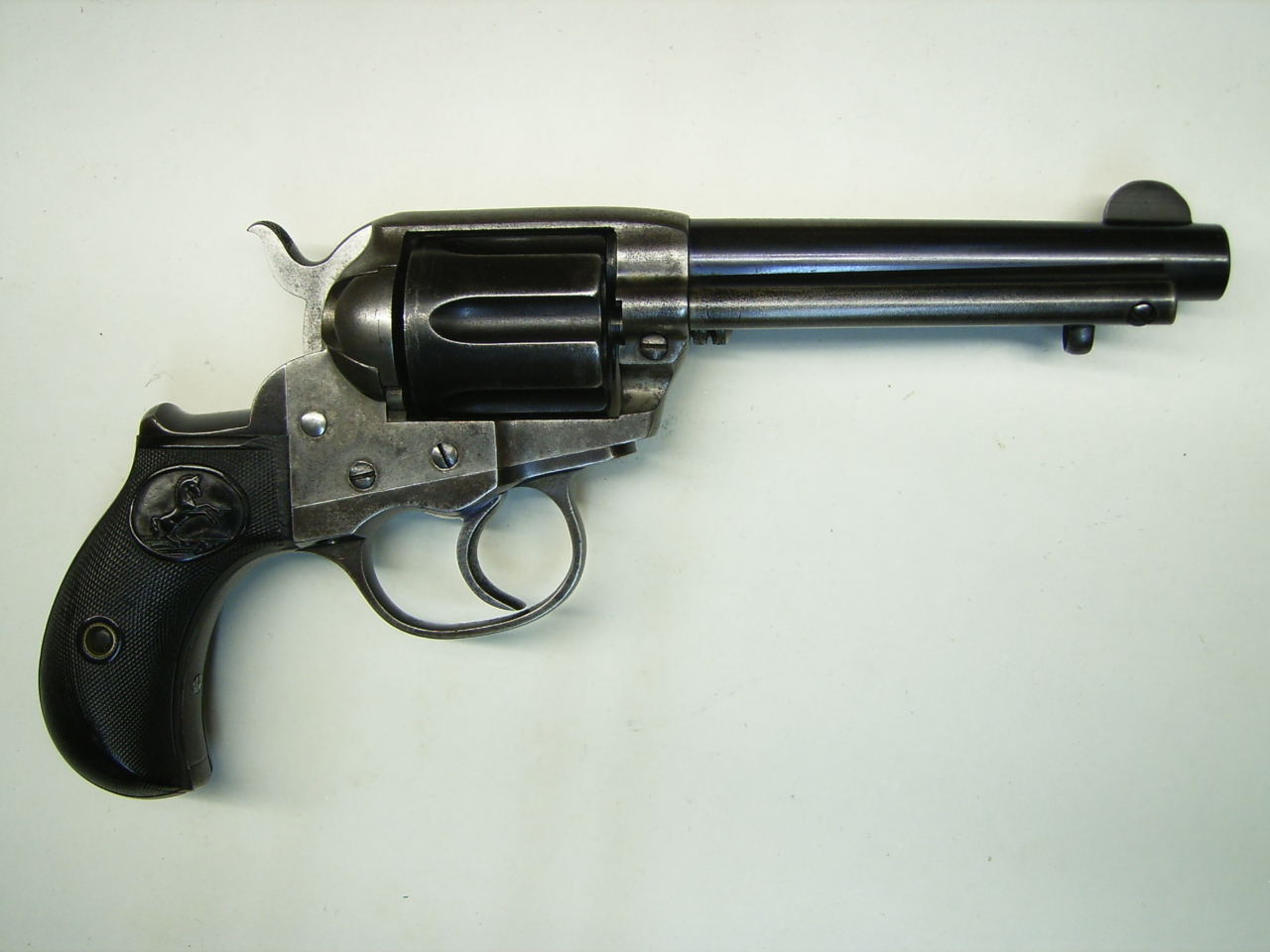 Sie bieten hier auf einen gut erhaltenen Colt-Revolver Md. 1877 "Lightning" im Cal. .38 LC., Baujahr 1905. Der Revolver ist nummerngleich und einwandfrei in der Mechanik. Die Trommel ist innen spiegelblank. Der Lauf ist innen blank mit einzelnen kleinen Flecken. Der Revolver hat keinen Neubeschuß, daher Verkauf nur an Sammler oder Händler. Privatverkauf, kein Rückgaberecht und Gewährleistung. Der Bieter erklärt sich durch sein Gebot mit diesen Bedingungen einverstanden.