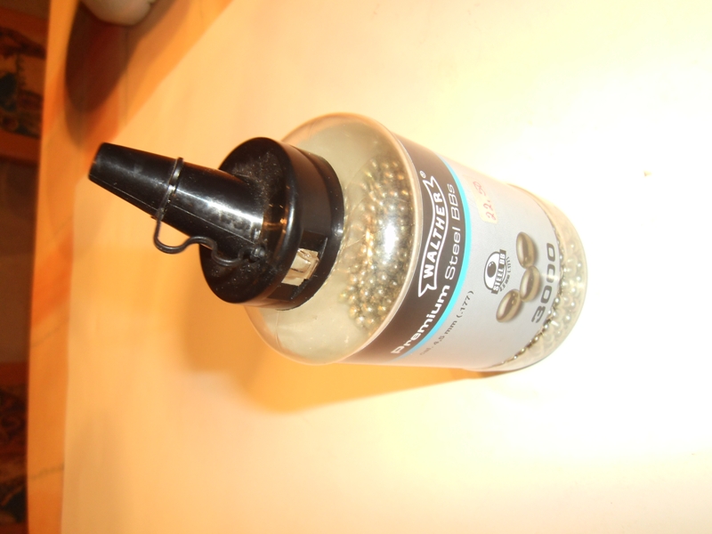 Stahlkugeln: Angefangene Dose mit Premium Steel BBs cal. 4,5 mm (.177) der Firma Walther. Inhalt ca. 1.900 Stück im Schnelllader. Material Stahl.