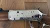 Lauflänge: 20", Röhrenmagazin unter dem Lauf, brünierter, runder Lauf und Röhrenmagazin, höhenverstellbares Visier, vernickelter Systemkasten, Unterhebel, Schaftkappe und Laufbänder, auf der linken Seite des Systemkastens eine Rollgravur in Form eines Rodeoreiters sowie die Aufschrift: "BRAVE LAND BOLD MEN", auf der rechten Seite ein eingraviertes Lasso und Sporen, Modellbezeichnung am Lauf, Sattelring, Schaft aus Nussholz mit beidseitig eingelegtem Medaillon, Stahlschaftkappe.