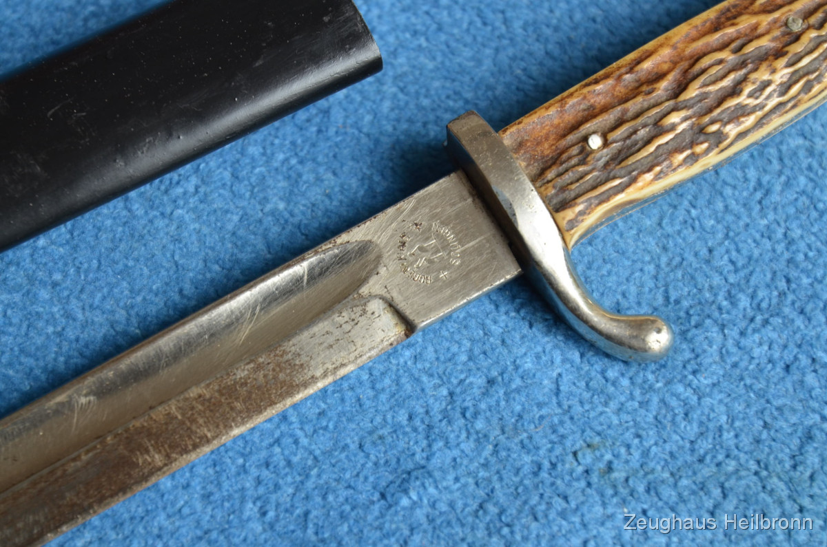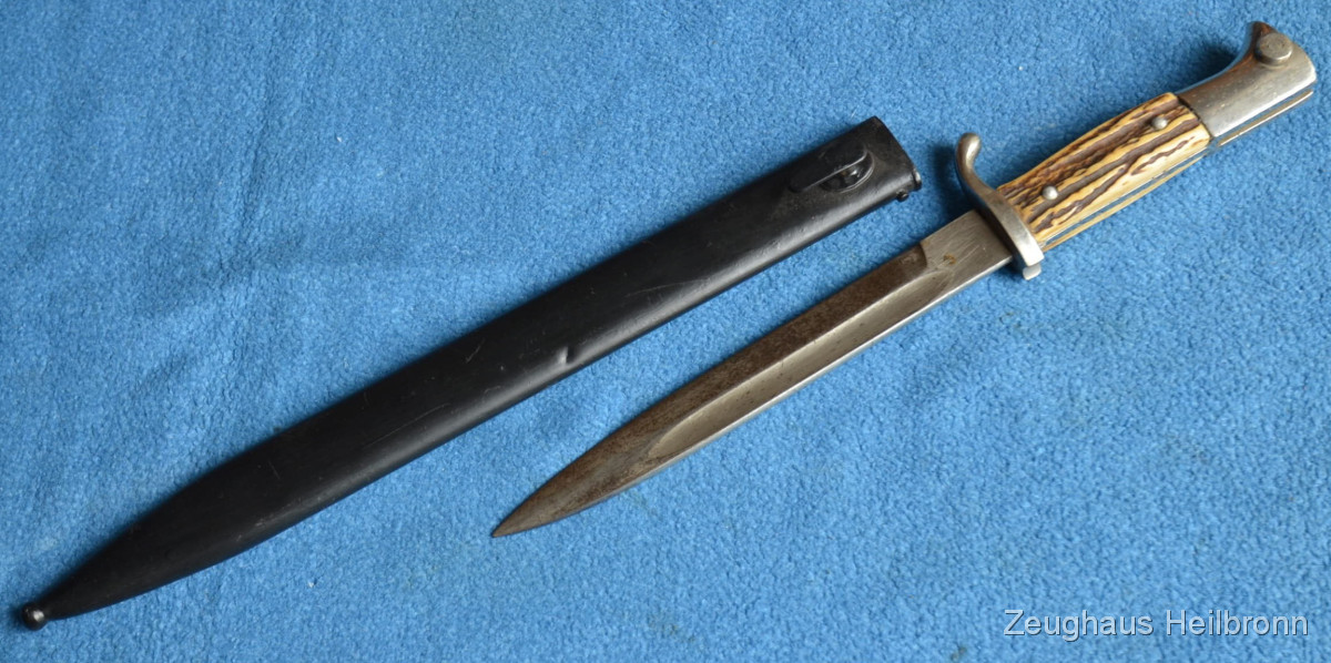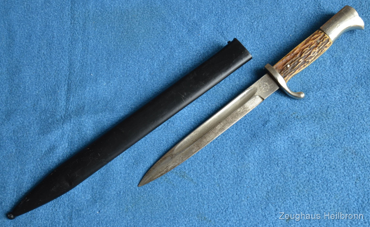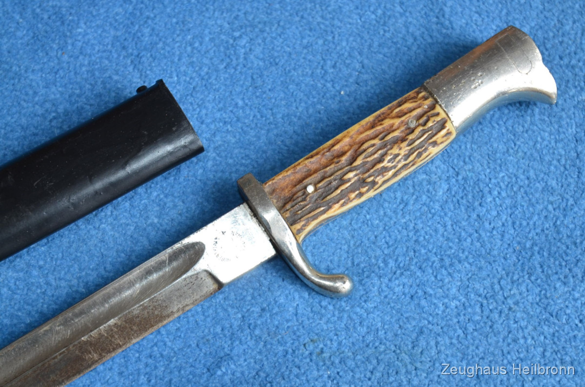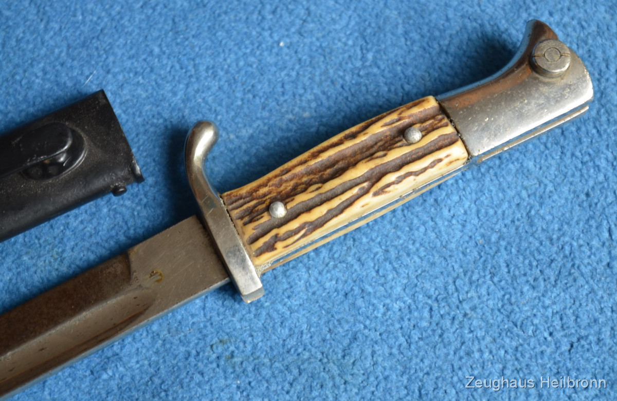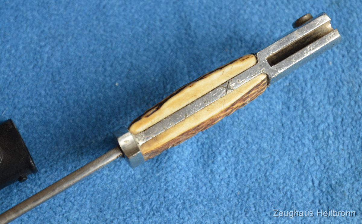 Griffschalen Horn, Klinge im Griff leicht locker, Scheide vermutlich nicht dazugehörend.