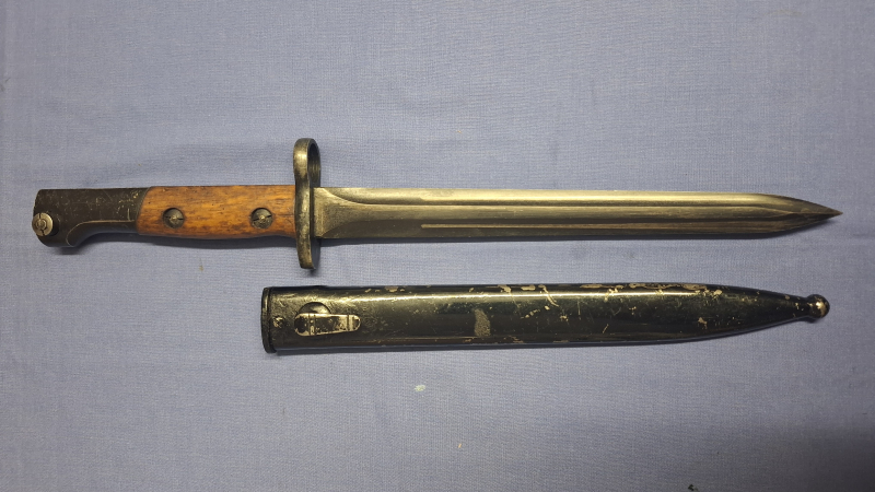 Aus meiner Sammlung kommt dieses Bajonett FN, in guten gebrauchten Zustand, zum Verkauf.Drücker gängig, Knauf nummeriert.