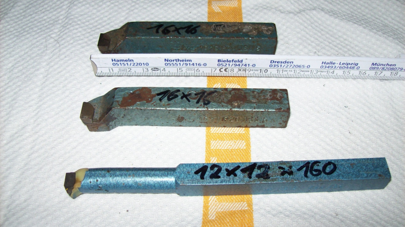 Dabei handelt es sich um 2 Stück gebrauchte 16x16mm und einen 12x12x160 unbenutzten Gewindestahl.