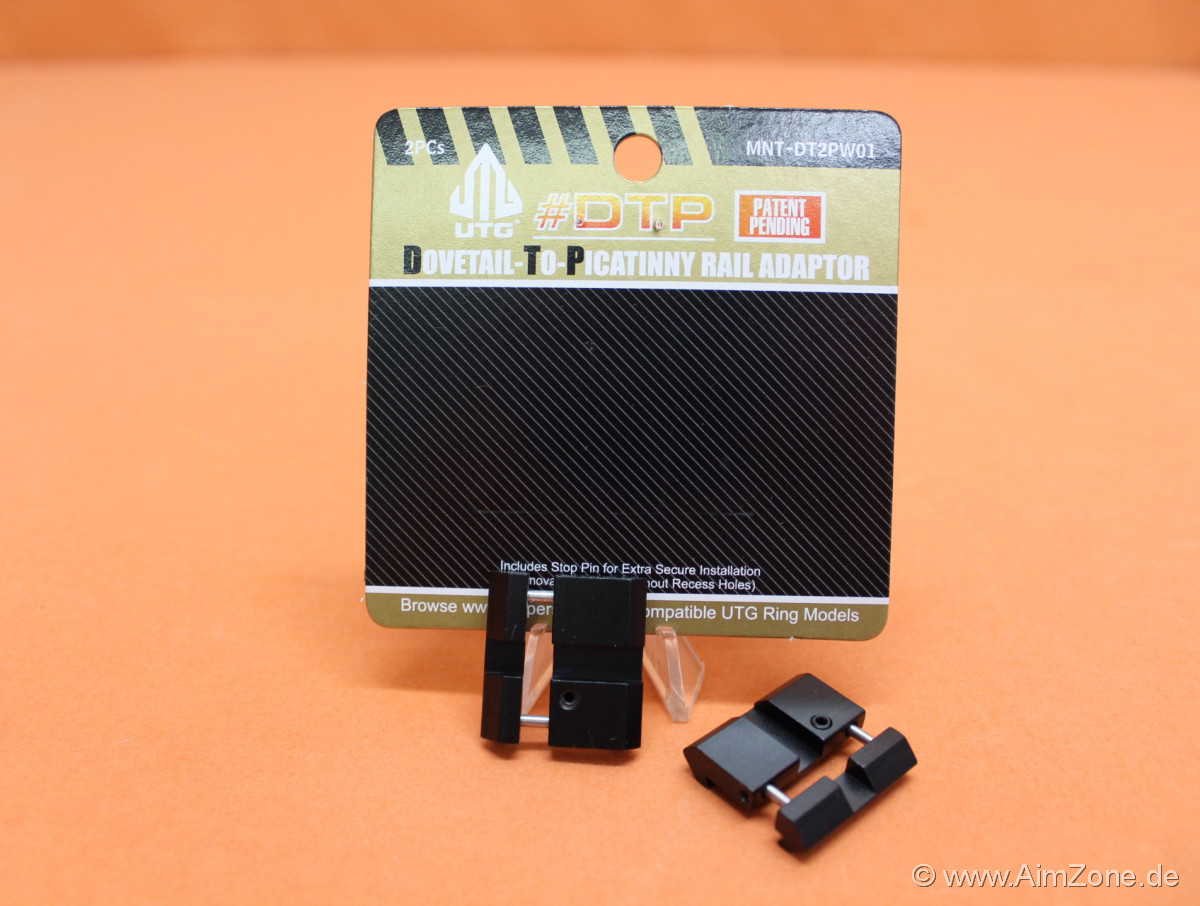 UTG Dovetail-to-Picatinny Rail Adaptor Low Profile (MNT-DT2PW01) Adapter mit Weaverprofil für 3/8" Prismenschienen BH=4mm/ BL=25mm.