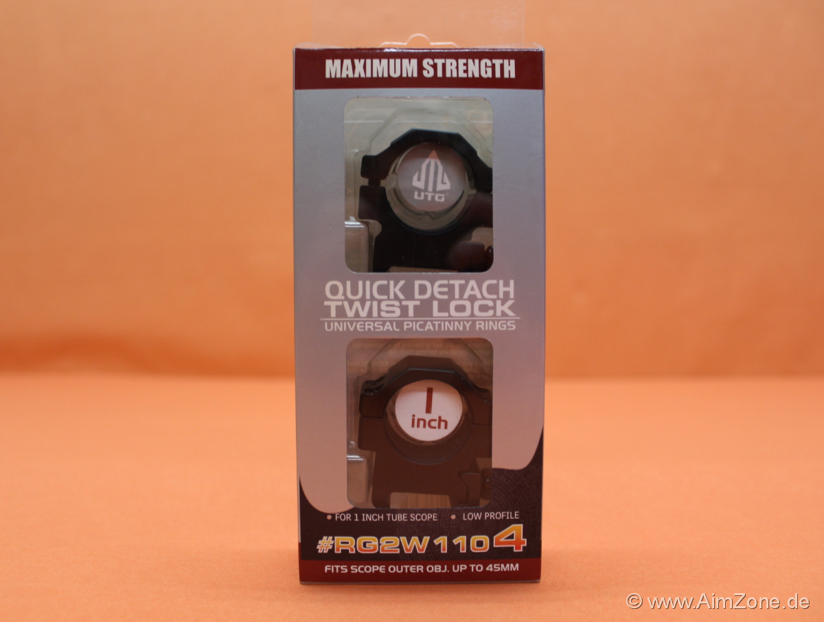 UTG QD Montageringe 1" Low (RG2W1104) Twist Lock Alu schwarz für Picatinnyprofil BH=10mm mit Knebelmutter (Schnellspann-Aufkipp-Montageringe).
