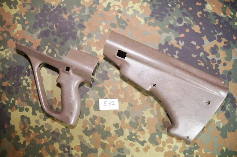 Achtung aufgepasst: sie bieten hier auf einen original zerschnittenen Schaft / Gehäuseunterteil leer in oliv vom STEYR AUG / STG77. Zustand, siehe Foto. Sie erhalten genau die auf dem Foto abgebildeten Ersatzteile. VERKAUF AUSDRÜCKLICH ALS DEFEKT! Beachten Sie auch unsere weiteren Auktionen.