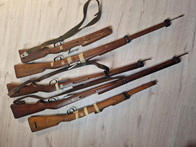 Sie bieten hier auf fünf Schäfte aus einem Nachlass. (Zustand siehe Bild) Im einzelnen handelt es sich um: Nr.8: La Coruna FR8 mit Gewehrriemen....Nr.11: Mosin Nagant....Nr.12: Schweizer Ordonanzgewehr mit Magazin und Lederriemen.....Nr.13: Schmidt Rubin Mod.31 mit Magazin Kal.7,5 und Lederriemen....Nr. 16 ist mir nicht bekannt. ) Pers. Abholung oder Besichtigung ist nach Absprache möglich. Verkauf nach EU-Recht ohne Garantie, Umtausch oder Nachverhandlungen.Weitere Bilder gerne auf Anfrage.