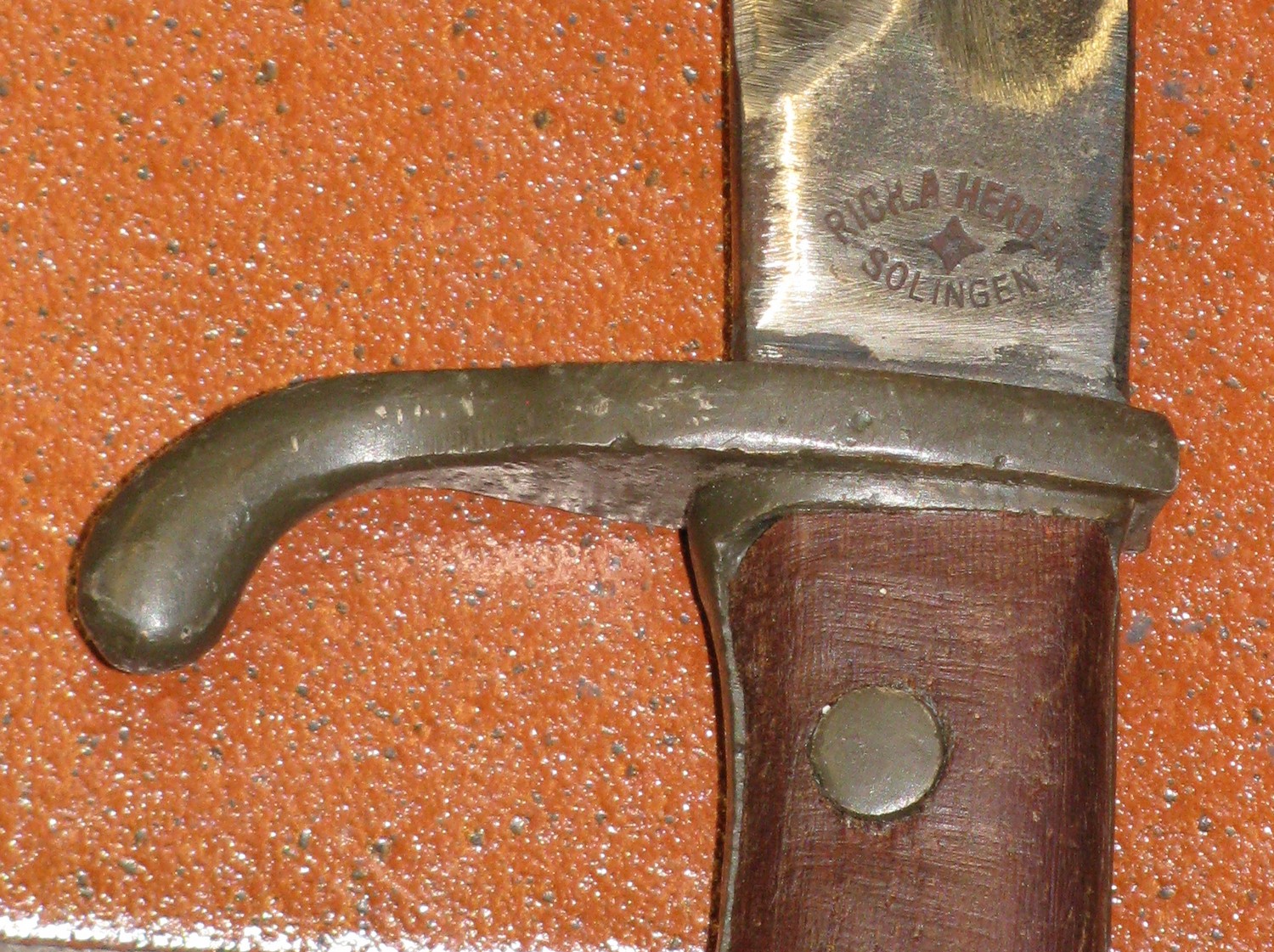 Zum Verkauf kommt ein Bajonett Deutsch, mit RICH. A. HERDER SOLINGEN und 16 auf Klingenrücken