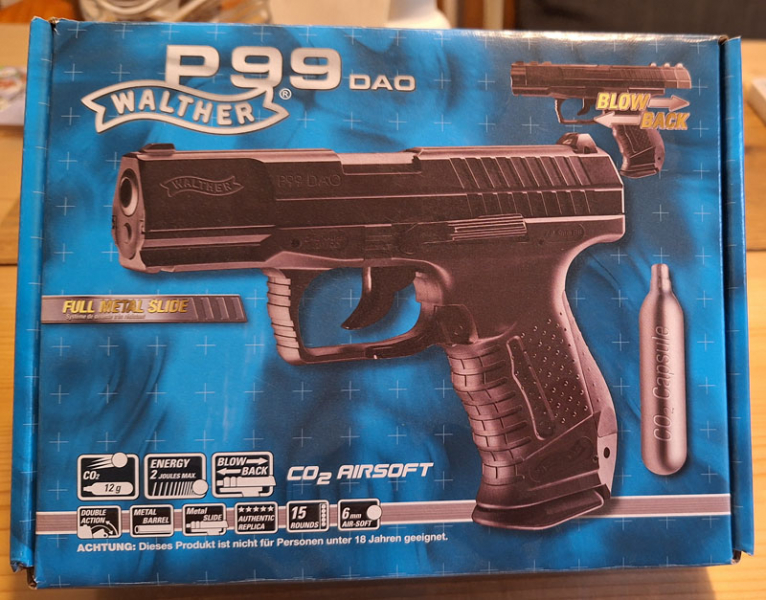 Zum Verkauf kommt hier eine neue - nur 3 x beschossene - Walther P99 DAO CO2 AirSoft Luftdruckpistole (NP 99,00 € ).