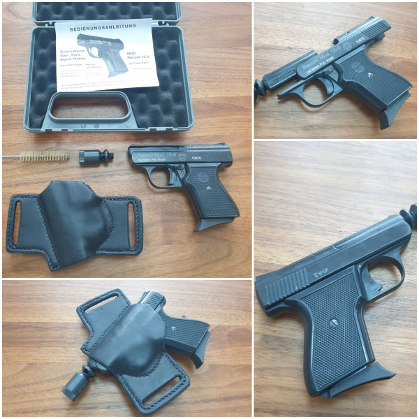 Record 15-9 Kal. 9mm P.A.K. PTB 906 Im Lieferumfang sind enthalten: Record 15-9, 1 Magazin (5-Schüssig), Abschussbecher, Reinigungsbürste, Koffer, Bedienungsanleitung, Lederholster. Guter Zustand, siehe Bilder. Der Abschussbecher ist unbenutzt. Bei der Sicherung wurde etwas orangene Leuchtfarbe angebracht. Dies ist ein Privatverkauf, ich übernehme keine Haftung, Rücknahme ist ausgeschlossen.