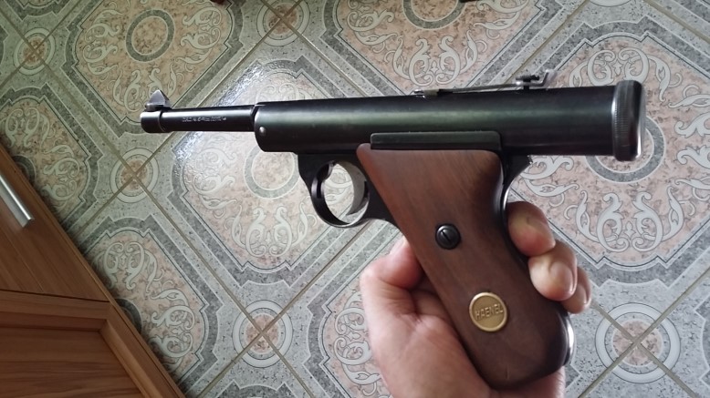 Hallo, hier biete ich ein selten gewordenes Sammelobjekt, die HAENEL-Mod.28 Luftpistole (Kal. 4,5mm), Made in Germany in einem sehr guten, sammelwürdigen Zustand. - Die Waffe wurde technisch durchgesehen, gereinigt und gewartet. Die Funktion und der Druck sind tadellos. Die Kippfunktion des Laufes ist ebenfalls einwandfrei und fest.