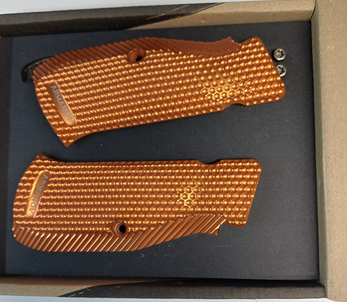 Ich verkaufe ein paar griffschalen von Armanov in orange und in Größe L inkl. Der schrauben