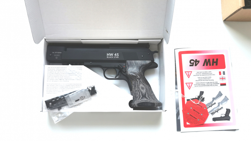biete neuwertige Weihrauch HW 45 Black Star Luftpistole mit echten Holzgriffschalen, in Kal. 4,5 mm, mit F-Zeichen, in Originalverpackung sowie Anleitung. NP 399€