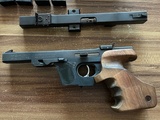 Sie bieten hier auf eine leicht gebrauchte Sportpistole Walther GSP im Kaliber .22LR mit Wechselsystem .32 S&W long mit original Koffer, original Griff, zweitem gebrauchten Griff, je 2 Magazinen pro Kaliber und Papieren.