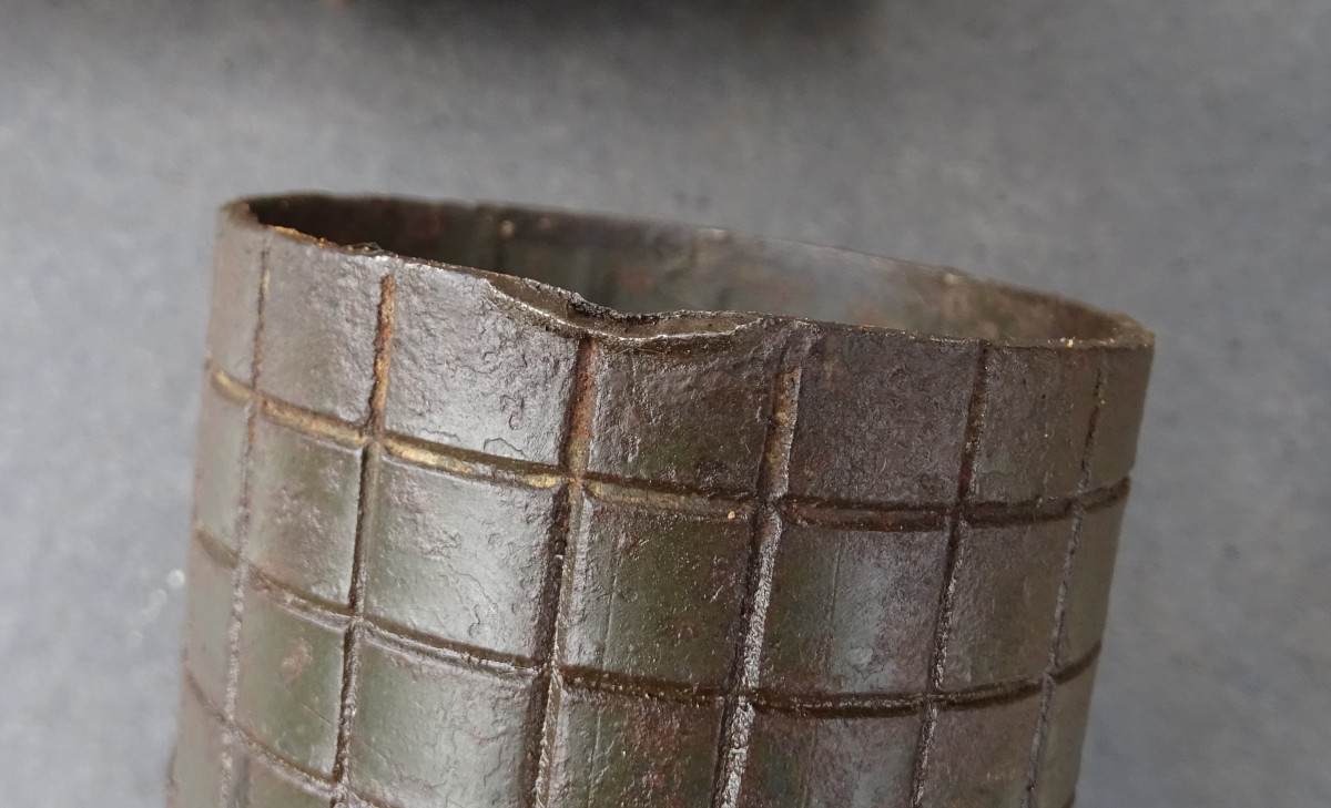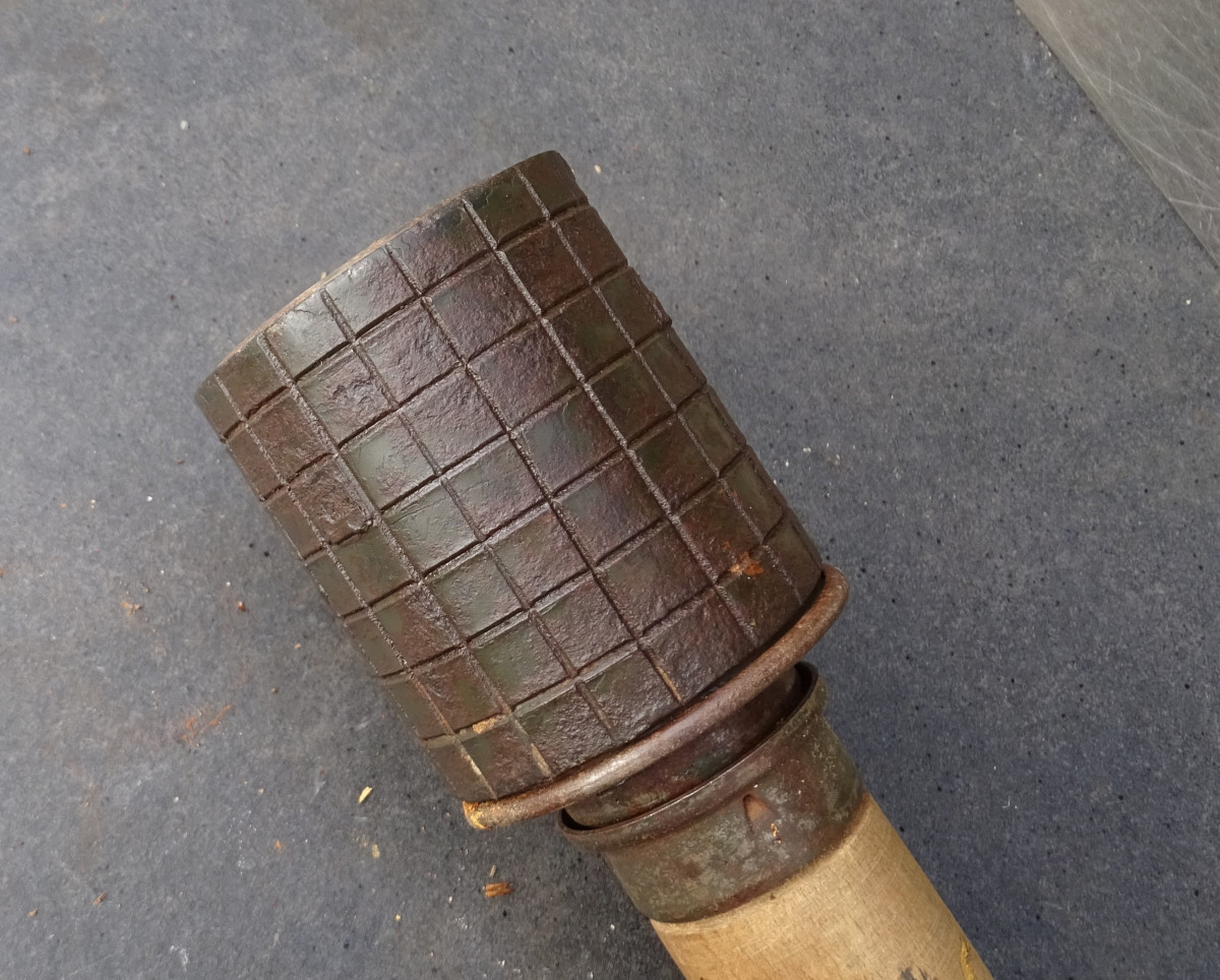 Splitterring für eine Stielhandgranate der Wehrmacht, es handelt sich hierbei um die etwas seltenere massivere Ausführung mit Sollbruchstellen.