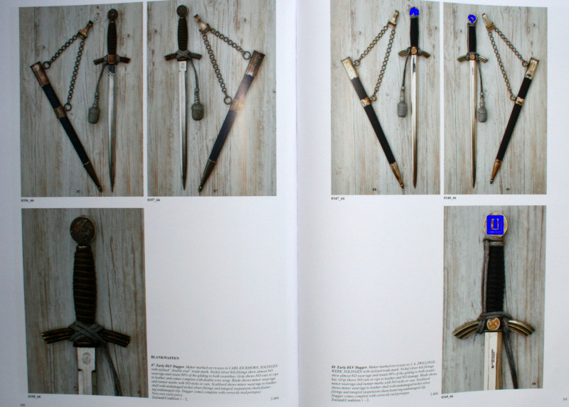 Im einzelnen sind abgebildet: Dienstdolche, Säbel, Orden- & Ehrenzeichen, Verleihungsurkunden, Helme, Schirmmützen und vieles mehr.