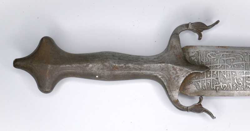 Eisen geschmiedet ,Klinge mit geätzter Ornamentik und figürlicher! Darstellung.