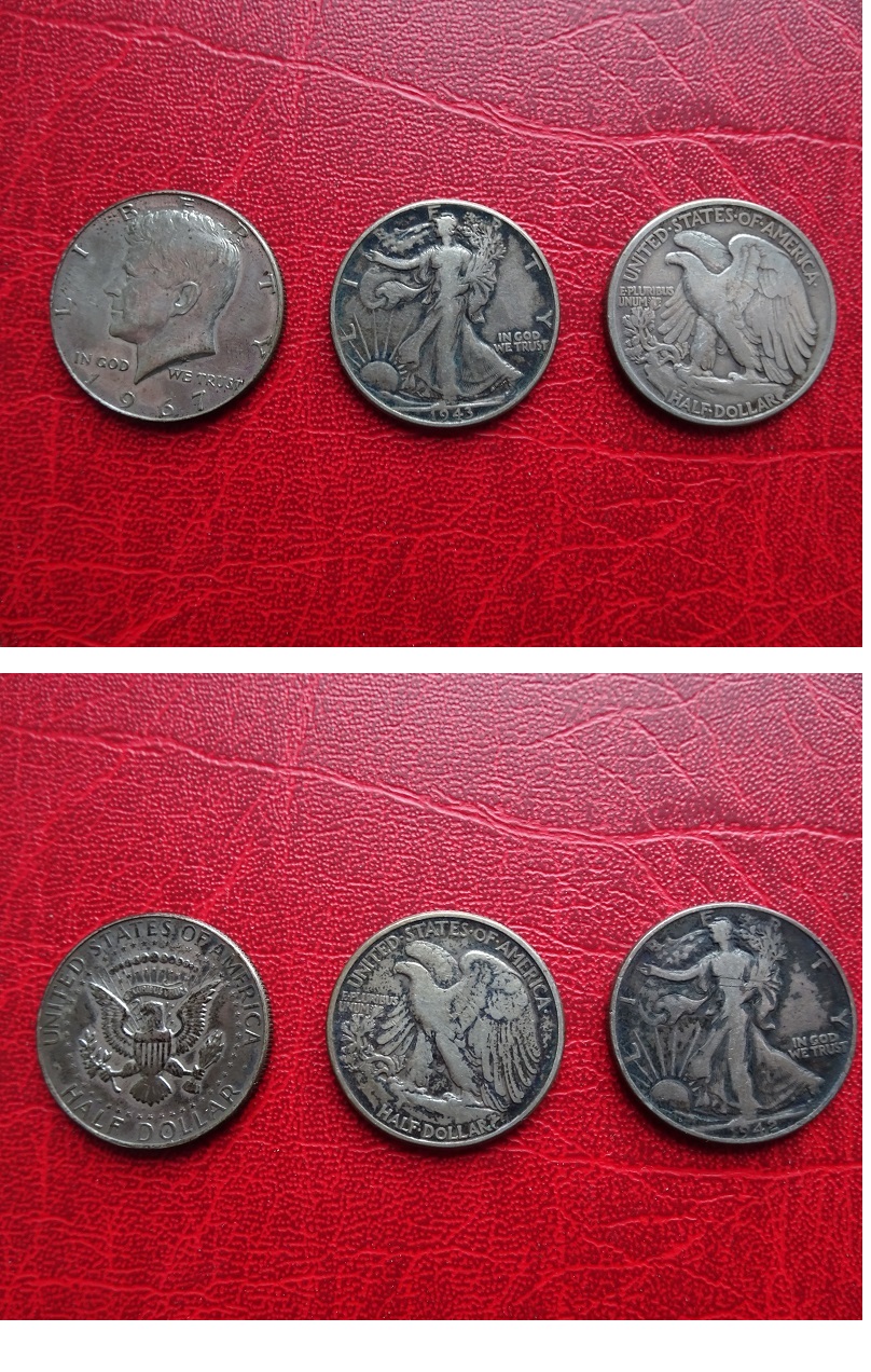 3 Stück US Half-Dollar, 1942, 1943, 1967, Silber