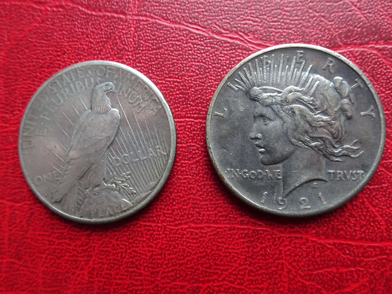 2 Stück Peace-Dolllars von 1921+22, Silber
