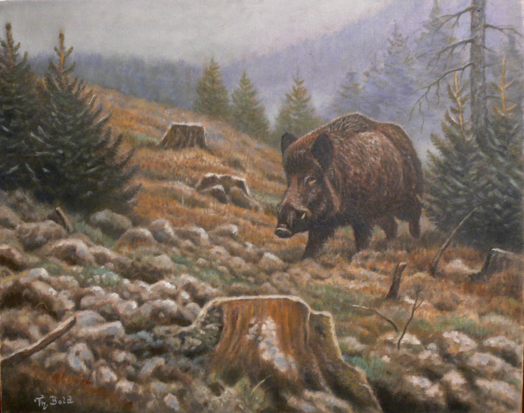 Original Jagdgemälde (Unikat) des Pfälzer Tier-und Jagdmalers Thomas Bold , Ölfarben auf Leinwand (auf Keilrahmen), Größe 40x50cm, signiert Th.Bold.