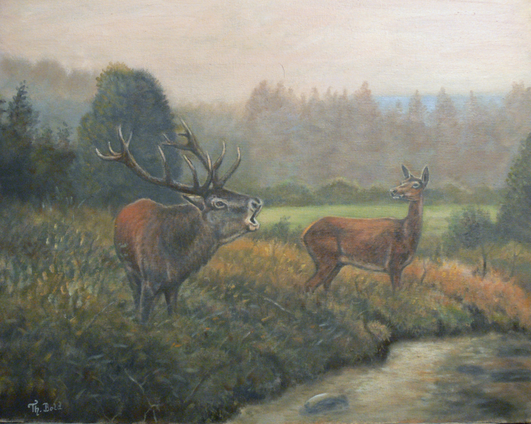 Original Jagdgemälde (Unikat) des Pfälzer Tier-und Jagdmalers Thomas Bold , Ölfarben auf Leinwand (auf Keilrahmen), Größe 40x50cm, signiert Th.Bold.