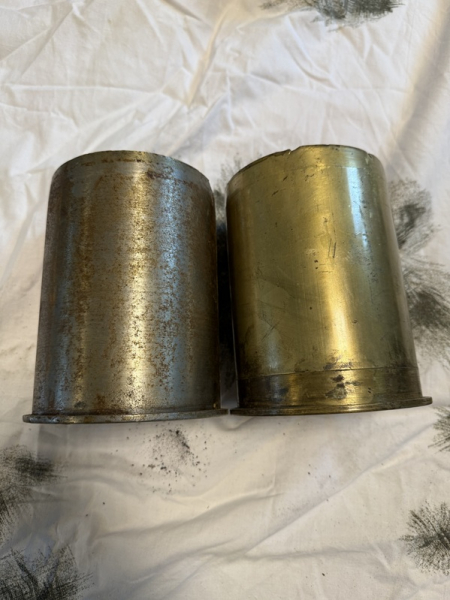 Zum Verkauf kommen zwei originale 10,5cm Hülsenkartuschen für die leichte Feldhaubitze 18 der Wehrmacht.
