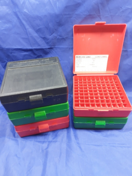 Biete 5 St. MTM CASE-GARD P 100 Patronen Boxen Cal. Für .44 Mag., .45 L Colt, .44 Spezial an. 2 x Grün, 2x Rot und 1x Schwarz. Die Boxen sind gebraucht, aber in einem guten Zustand. Siehe Bilder, die Teil der Artikelbeschreibung sind. In jeder Box liegt ein MTM Label.