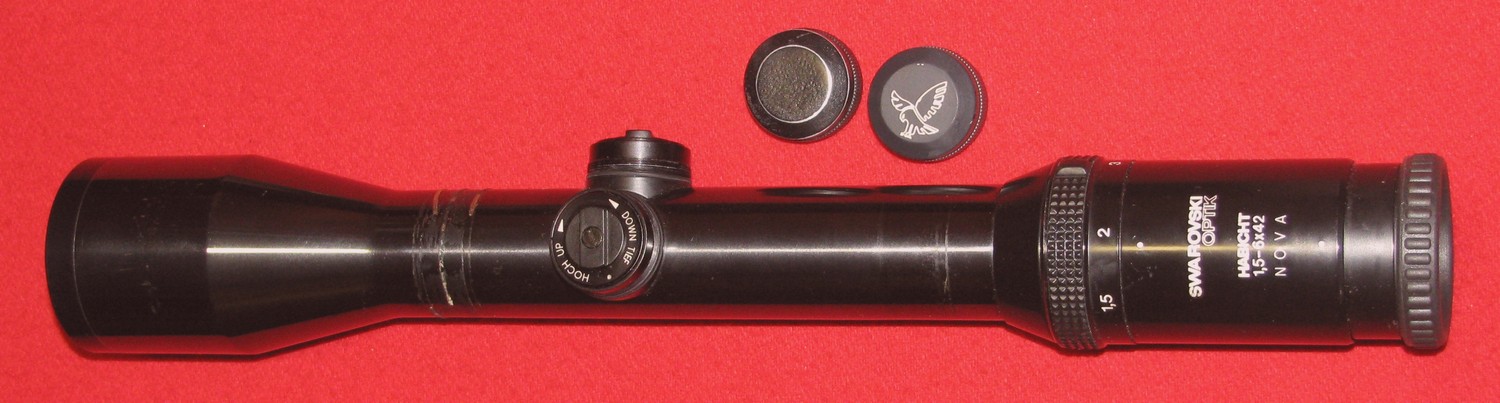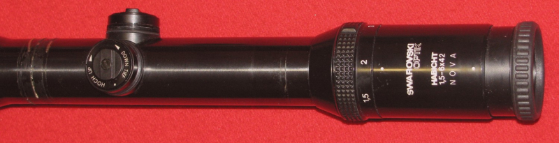 Zum Verkauf kommt ein ZF / Zielfernrohr / Stahlglas, ein SWAROVSKI HABICHT 1,5 - 6 x 42 NOVA mit dem seltenen Absehen 4