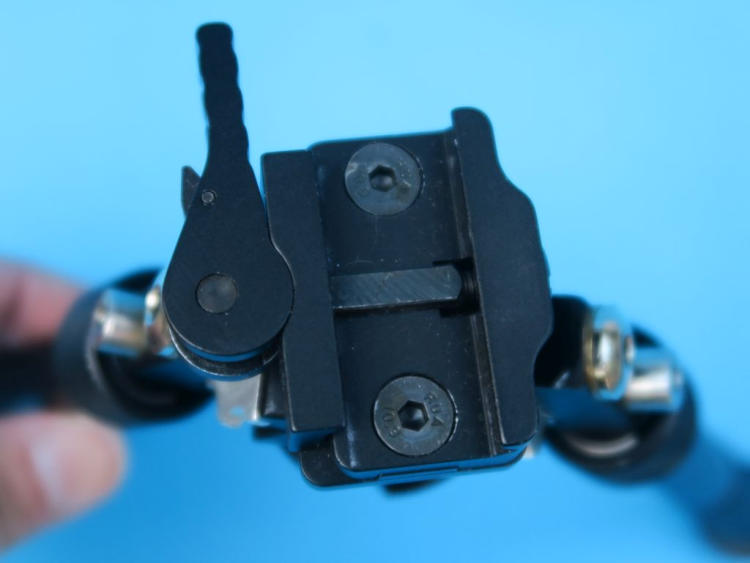 Wesentlich: Dieses Bipod kann mit einer Schnellverriegelung unproblematisch an jede Picatinnyschiene montiert werden. Kein mühsames Anschrauben!
