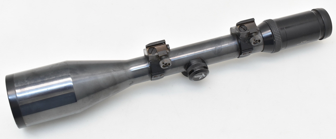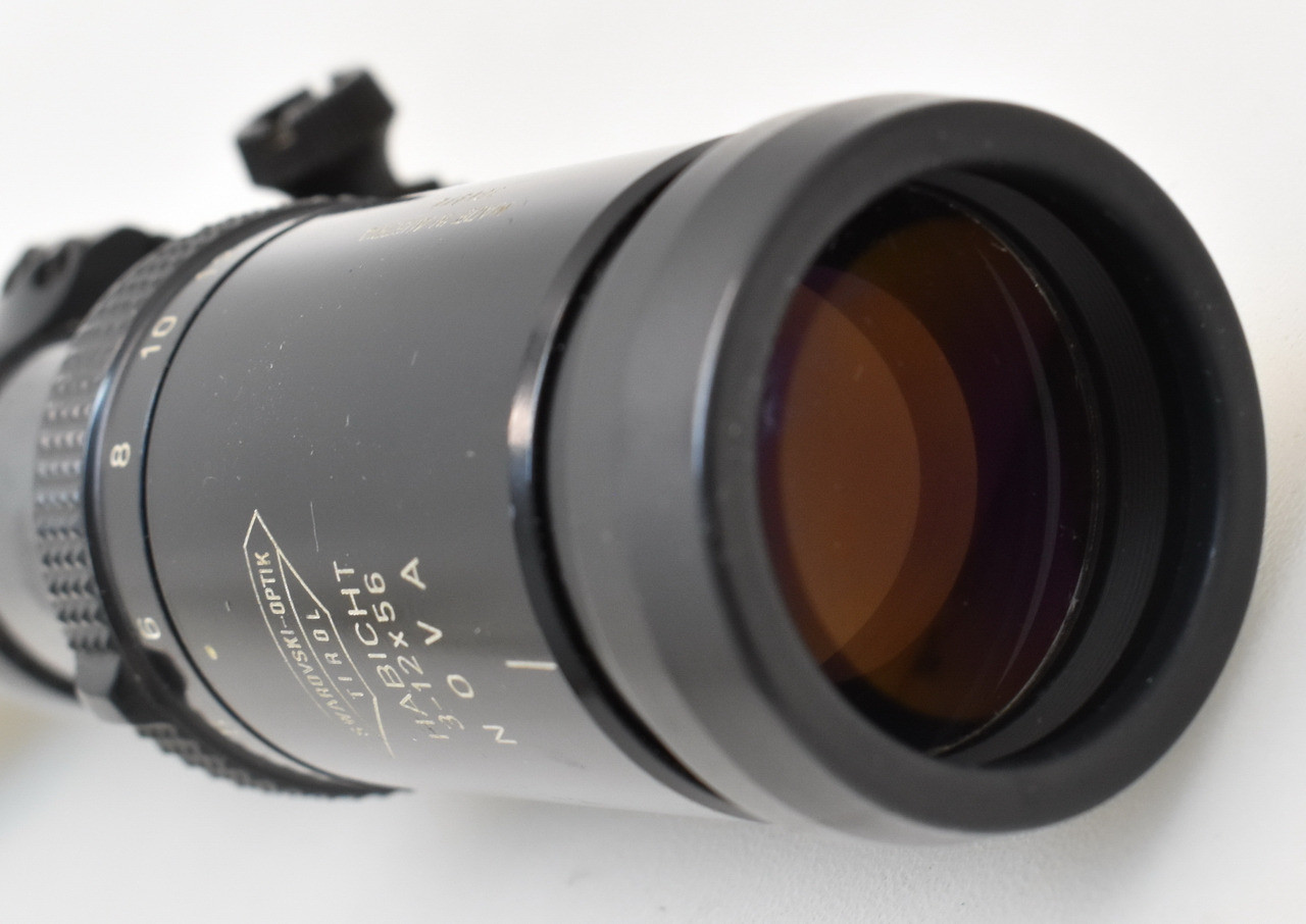 Das Glas hat keinerlei Eintrübung und bietet eine klare Durchsicht. Dioptrien-und Vergrößerungseinstellungen sind leichtgängig. Teile einer Montage sind noch vorhanden.