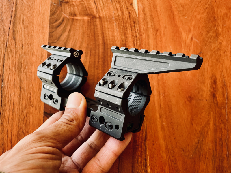 0 moa Vorneigung, 34mm Durchmesser, 32mm Höhe bzw. 15mm von Picatinny bis Ring unten.