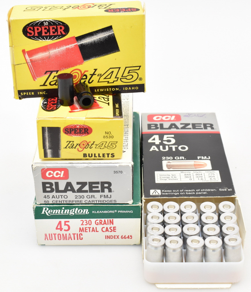 70 St. CCI Blazer 230gr. FMJ 50 St. Remington 230gr. Metal Case 100 Speer Plastik Trainingspatronen