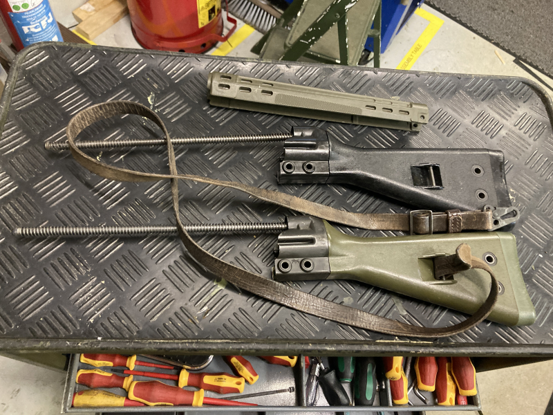 G3 Bundeswehr Schaft Konvolut mit Feder oliv und schwarz