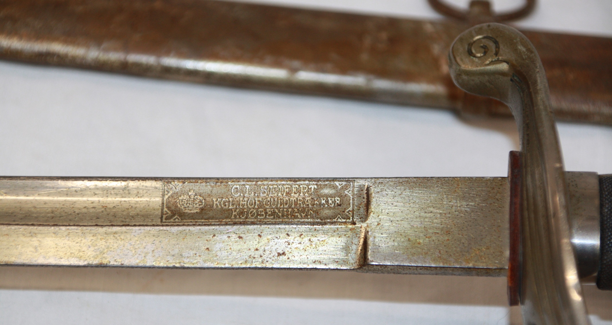Komplett mit Scheide und Portepée. Hersteller: W.K.C. Solingen. Verkäufer: C.L.Seifert Kopenhagen.