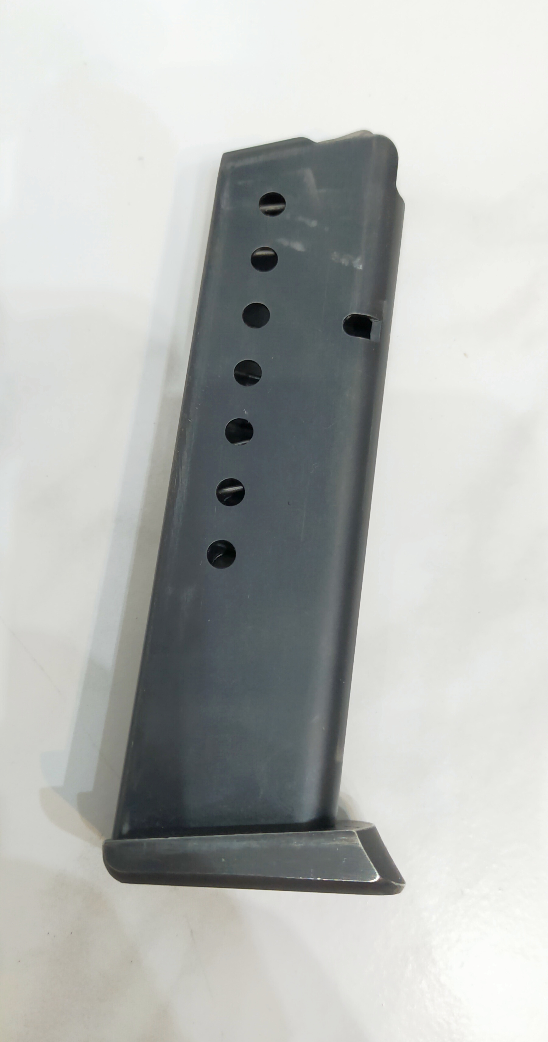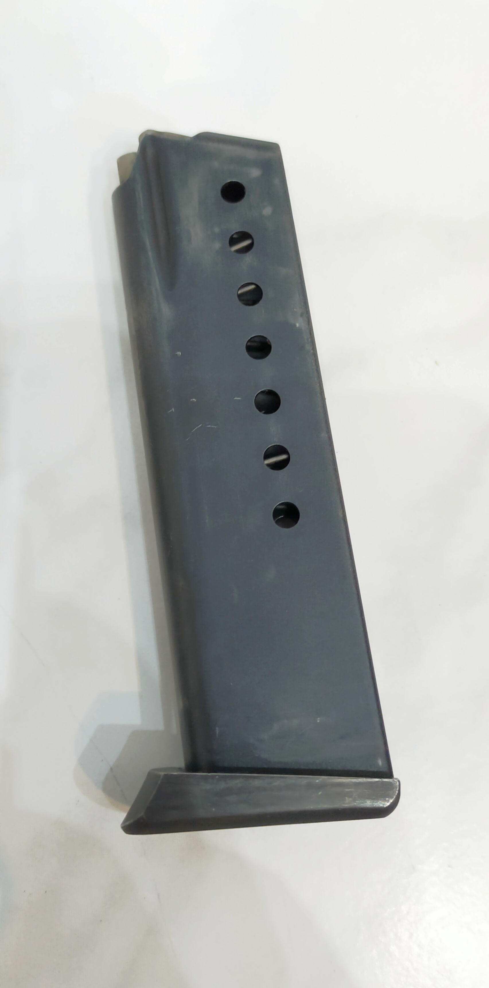 Ich verkaufe hier ein original Magazin SIG SWISS passend für eine P210 im Kaliber 9mmLuger. Für Modelle mit obenliegendem Magazinhalter. Stahlmagazin mit Target Magazinschuh. Kapazität 8 Schuß. Leichte Gebrauchsspuren, Funktion einwandfrei. Dies ist ein Privatverkauf daher schließe ich jedwede Sachmängelhaftung aus.