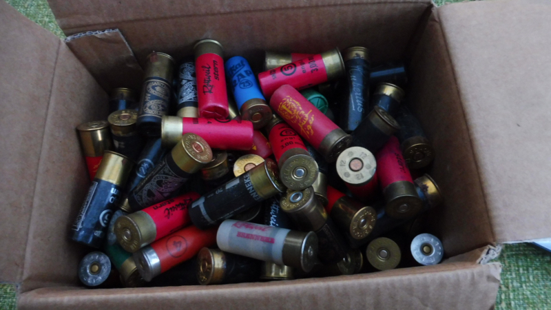 Schrotpatronen kal. 12 ca. 5,3 kg. Plastik und Pappe
